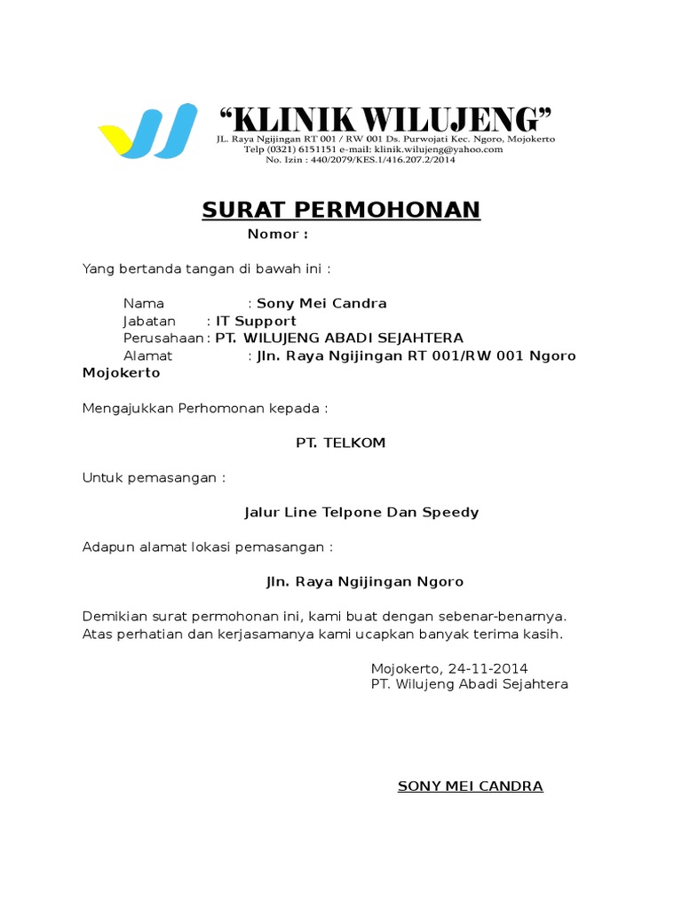 Surat Permohonan Pasang Speedy Pdf